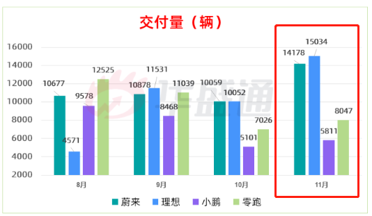 11月国内造车新势力成绩单出炉!理想、蔚来交付环比大涨