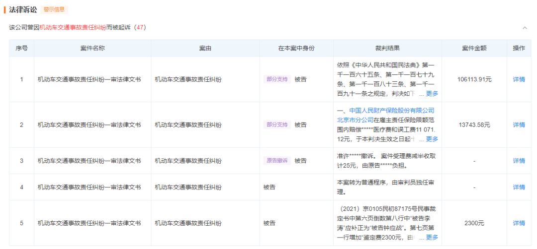 ▲闪送有多条关于机动车交通事故的法律诉讼(来源:天眼查)