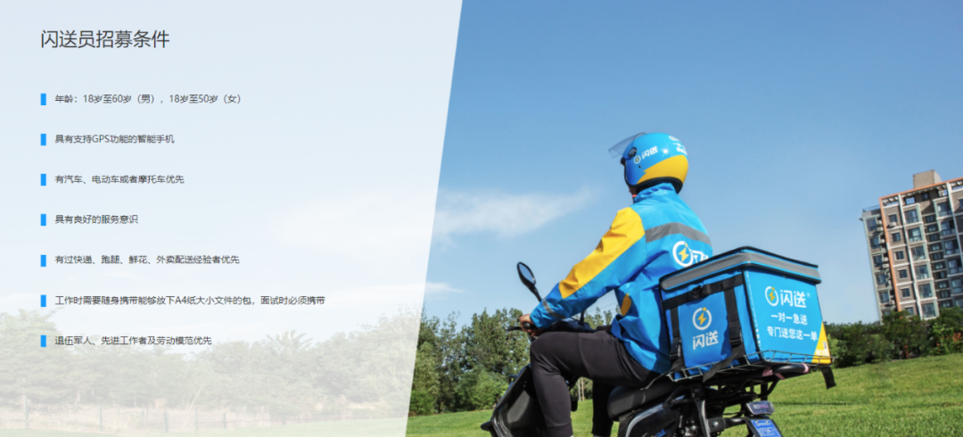 ▲闪送骑手招募条件(来源:闪送官方网站)