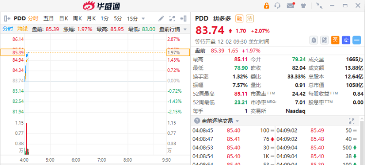 华盛资讯12月2日消息,美股盘前,热门中概股多数走高,小牛电动涨超5%,贝壳涨近3%,拼多多、哔哩哔哩涨近2%,阿里巴巴、小鹏汽车涨1%,理想汽车跌近2%。