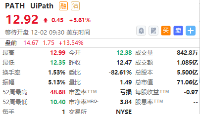 UiPath $PATH 盘前涨超13%,Q3业绩胜预期