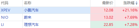 中概新能源车股走高,小鹏汽车 $XPEV 涨超21%,蔚来涨超7%,理想汽车涨超7%。