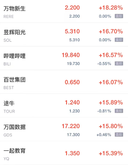 领涨中概股列表: