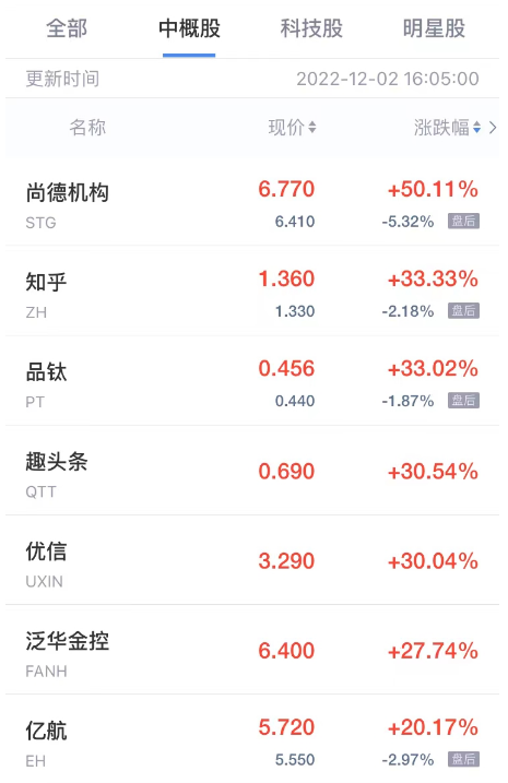 (截图来自新浪财经APP 行情-美股-中概股热门板块)下载新浪财经APP