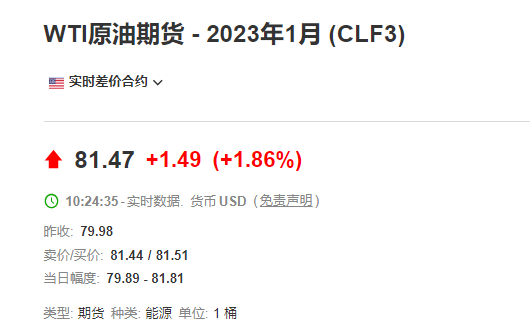 截稿时,WTI原油期货涨1.86%,报81.47美元,伦敦布伦特原油期货涨2.05%,报87.17美元。