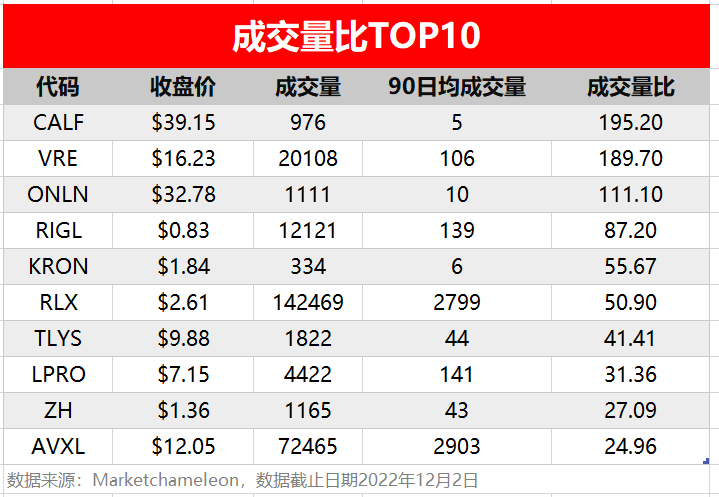 - 小盘股ETF基金CALF $CALF 周五期权成交量976,成交量比195.2,其主要跟踪可选消费、工业、能源等。房地产投资基金VRE成交量超过2万,成交量比达到189.7。