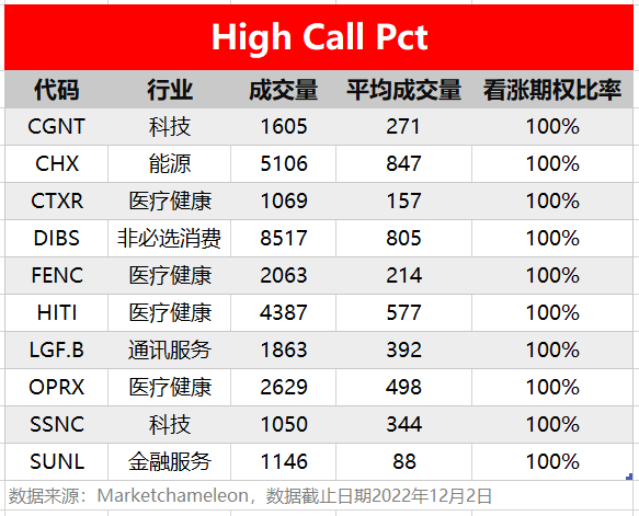 注:High Call Pct/High Put Pct是指相关期权标的当前看涨/看跌比例大小,该比值越高意味着该期权标的看涨/看跌的合约占比越高。