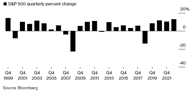 若自10月份以来的市场反弹持续到年底,那么标普500将有可能创造1999年以来最好的四季度表现。截至12月2日美股收盘,标普500指数四季度累涨13.56%,仅次于1999年四季度的14.17%。