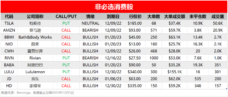 - Lululemon绩前现看跌期权异动,成交300张,总金额15.51万美元,显示看多情绪。公司将于美股周四盘后发布业绩,绩前获得华尔街看好,他们预计,Lululemon的品牌忠诚度将帮助其股价延续涨势。该股在过去两个月大幅上涨,几乎抹去了其在2022年的大部分跌幅。