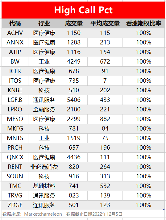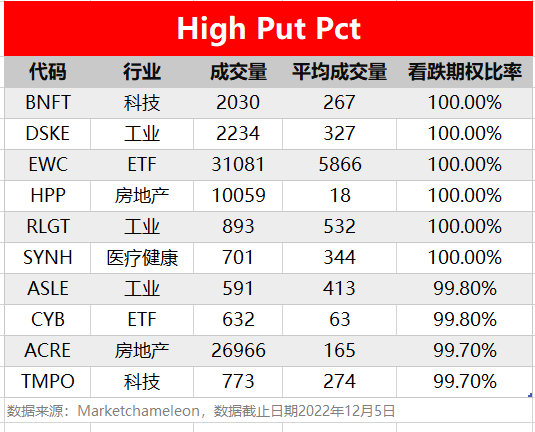 注:High Call Pct/High Put Pct是指相关期权标的当前看涨/看跌比例大小,该比值越高意味着该期权标的看涨/看跌的合约占比越高。