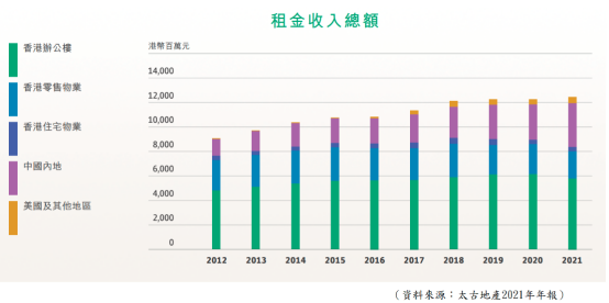 除中国外,太古地产亦有在美国发展,成功发展迈阿密Brickell City Centre 综合发展项目,楼面面积达400 万平方呎。可见,管理层仍将这企业,定位为持续发展,并不是单纯持有原有物业收租。