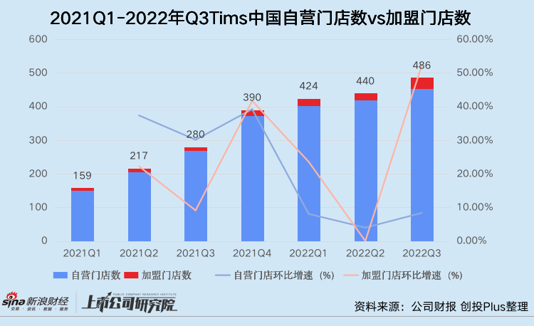 不过,跑马圈地带动营收增长的风光背后,Tims中国仍未走出亏损泥沼。仅第三季度的三个月期间,公司净亏损就高达1.95亿元,同比扩大72.57%。结合此前招股书披露的信息,入华3年,Tims中国共计亏损超11亿元,2022年前三季度亏损规模已是2021年全年的1.36倍。