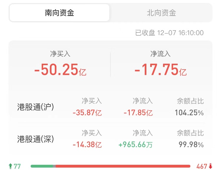 南下资金今日净卖出港股50.25亿港元,其中港股通(沪)净卖出35.87亿港元,港股通(深)净卖出14.38亿港元。上一交易日净买入港股28.36亿港元。