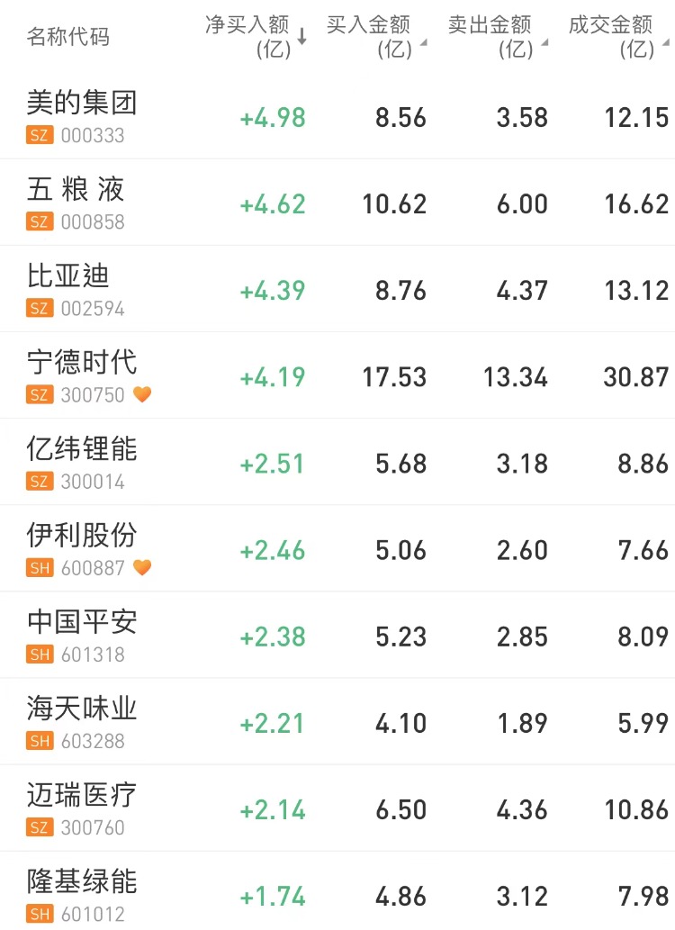 北上资金今日净买入美的集团 $000333.SZ 4.98亿元,为今日买入之最;净买入五粮液 $000858.SZ 4.62亿元。