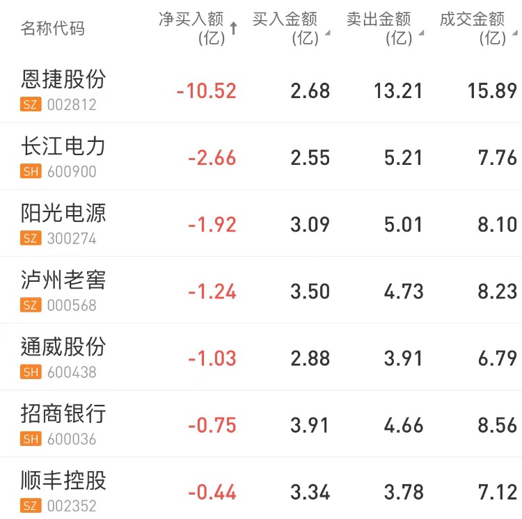 今日北上资金净卖出恩捷股份 $002812.SZ 10.52亿元,净卖出长江电力 $600900.SH 2.66亿元。