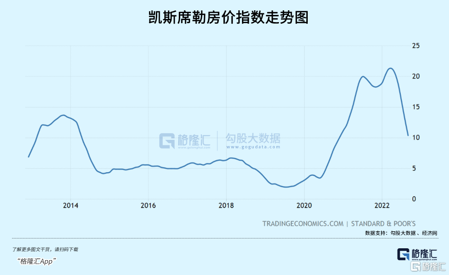 今年9月,美国20个大城市房价综合指数同比上涨10.4%,较前值13.1%下降2.7个百分点。环比来看,其中旧金山和西雅图房价跌幅最大,均跌2.9%,拉斯维加斯下滑2.4%,凤凰城跌幅为2.2%。