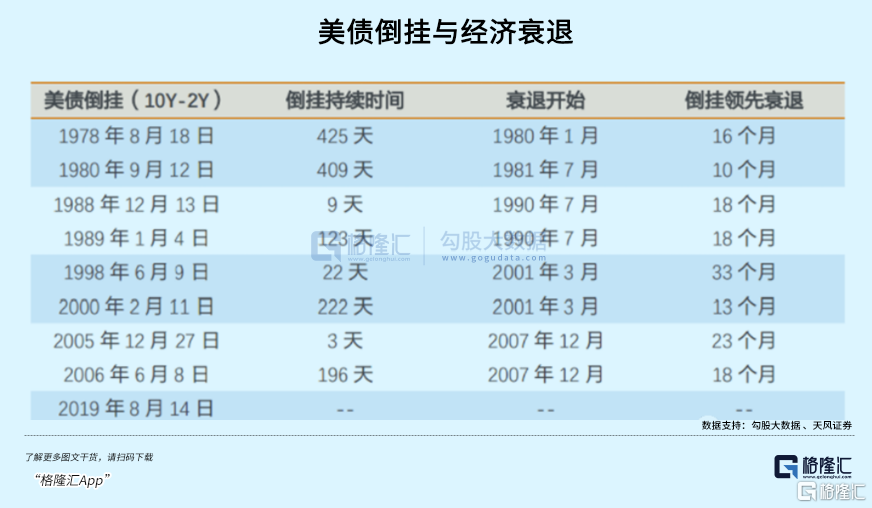 金融指标上,2年期与10年期国债收益率近日倒挂幅度高达80个基点,创下1981年来最大的幅度。该指标往往被视为美国经济衰退的相对准确的领先信号。1988年以来,倒挂现象大致发生了4次,也都引发了后来的经济衰退与危机。