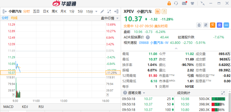 新能源汽车板块多数下挫,截至发稿,小鹏汽车跌超11%,报10.37美元。蔚来跌超8%,图森未来跌超6%,理想汽车跌超5%,法拉第未来跌超3%,特斯拉跌近3%,Lucid跌超2%,Rivian跌超1%。