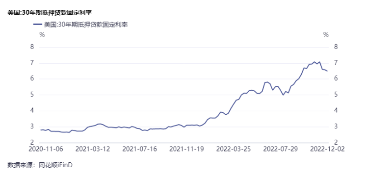根据抵押贷款银行家协会(MBA)周三公布的数据,在截至12月2日的一周,30年期固定利率抵押贷款的合约利率下降8个基点至6.41%,仍为9月中旬以来最低水平。抵押贷款利率在过去一个月里回落,因为美联储已暗示将很快放慢加息步伐,时机很可能是在下周的政策会议上。