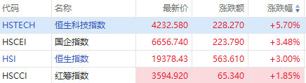 港股一扫昨日下午的颓势,今日高开高走,恒指涨3%,重返19000点以上,恒生科技指数涨超5%。