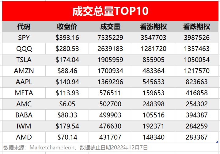 1.期权成交总量TOP10