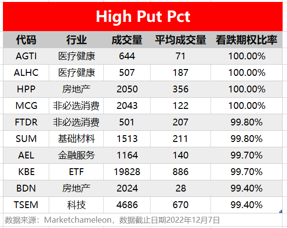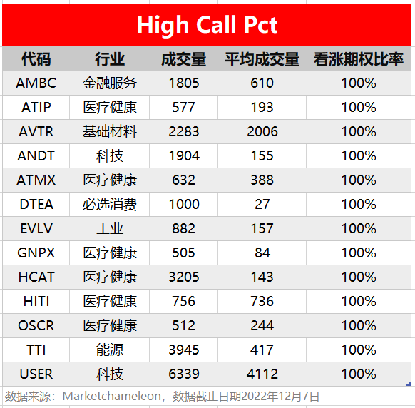 注:High Call Pct/High Put Pct是指相关期权标的当前看涨/看跌比例大小,该比值越高意味着该期权标的看涨/看跌的合约占比越高。