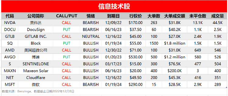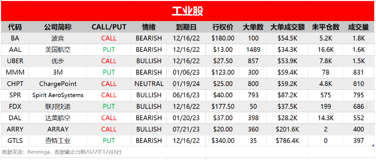 周四(12月8日),非必选消费、信息技术和工业板块相关个股出现较多活跃单,按照当日成交量排行,榜单TOP分别如下: