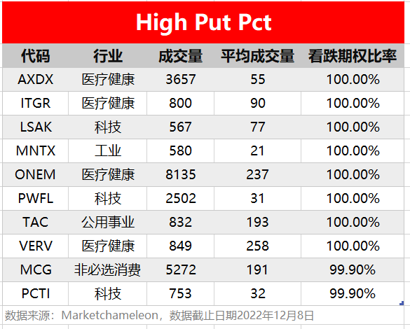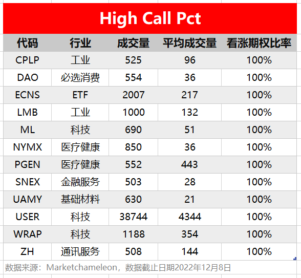 注:High Call Pct/High Put Pct是指相关期权标的当前看涨/看跌比例大小,该比值越高意味着该期权标的看涨/看跌的合约占比越高。