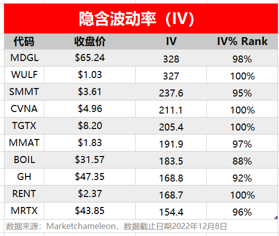 (注:隐含波动率(IV)指标是期权交易最常用的指标之一,通常情况下该指标越高,意味着期权交易的机会越大,IV(%)百分比表示当前隐含波动率在过去一年中最高和最低区间内的相对位置,有助于了解指定期权波动率的纵向趋势,该比率越高说明近期隐含波动率处于上升趋势。)