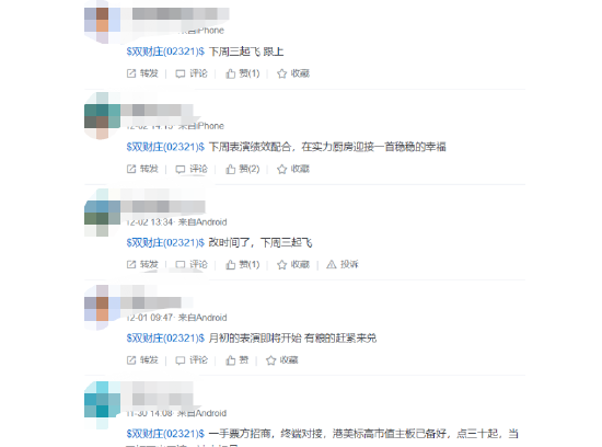 在某社区平台上,吹票的络绎不绝。有人就表示,“下周三起飞”,而昨日的正是周三,且股价不是起飞而是闪崩。