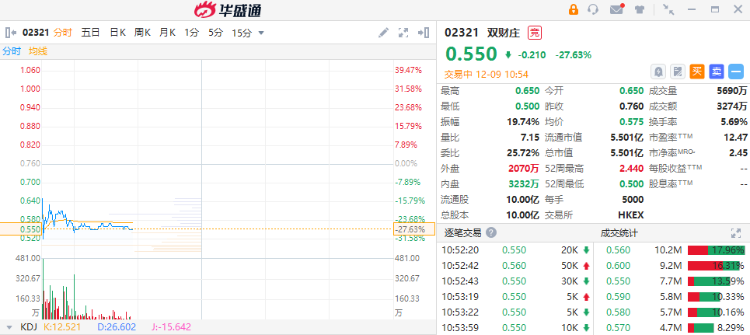 港股庄股双财庄昨日闪崩逾50%,今日再跌近30%,两日股价跌70%,此前公司上市四个月股价暴涨近3倍。