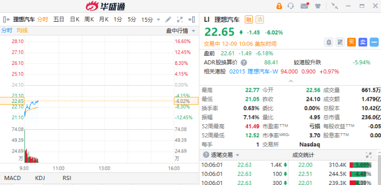 造车新势力普跌,理想汽车绩后大跌6%,报22.65美元。公司三季度营收93.4亿元,净亏损同比大幅扩大至16.5亿。公司执行董事兼总裁沈亚楠宣布辞职。小鹏汽车跟跌超4%,蔚来跌近3%。