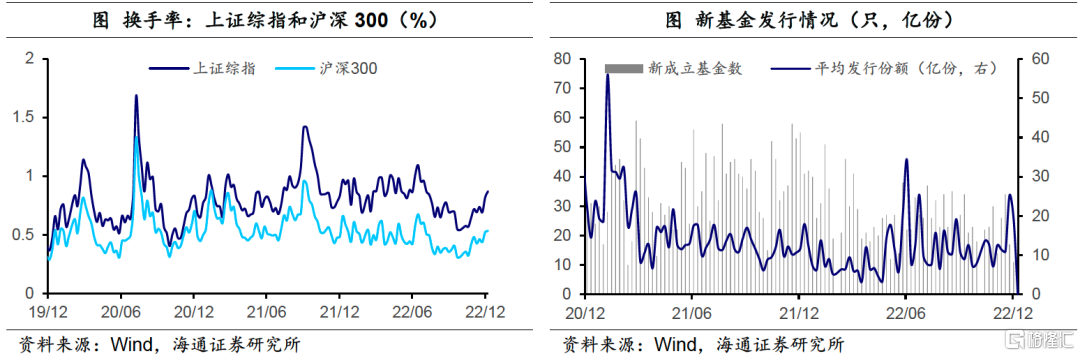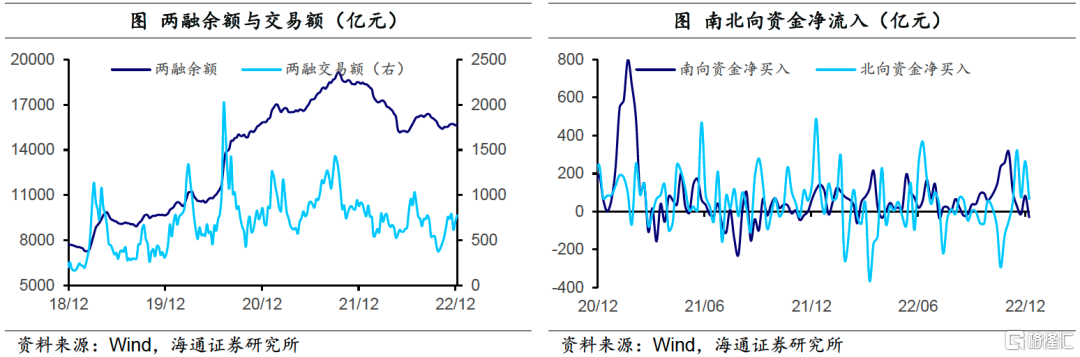 从交易指标来看,上周上证综指和沪深300换手率继续回升,分别从前一周的 0.82%和0.52%回升至0.87%和0.53%。上周新发行基金2只,平均发行份额为0.11亿份,其中1只为混合型基金,发行份额为0.11亿份。两融余额小幅回升,当周环比增加0.33%。北向资金净流入为65.5亿元,较前一周明显回落。