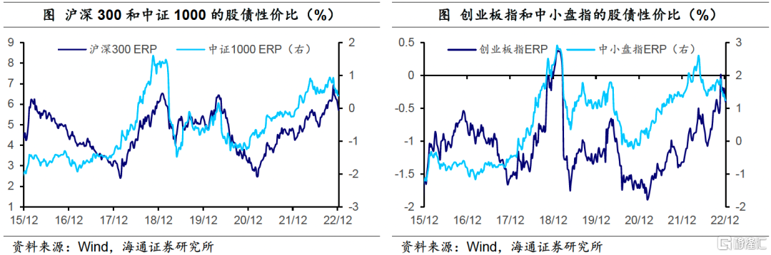 从股债性价比来看,各指数ERP继续回落。上周股指续升,各指数股债性价比均继续回落,其中,沪深300ERP从5.98%回落至5.71%,中证1000ERP从0.40%回落至0.38%;创业板指ERP从-0.34%回落至-0.40%,中小盘指数ERP从1.30%回落至1.24%。
