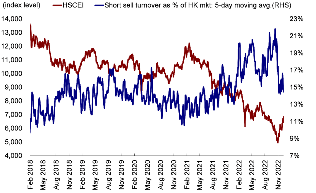 图表:卖空成交比率持续回落后持续处于稳定水平