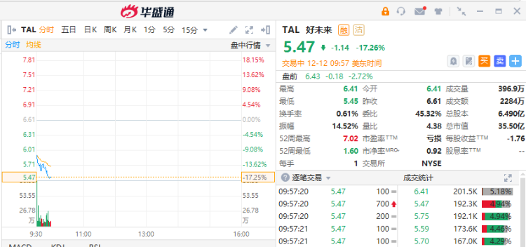 中概在线教育板块普跌,好未来跌17.26%,一起教育科技跌3.79%,新东方跌3.23%,高途跌1.45%。