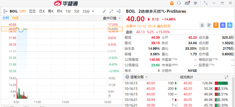 ETF方面,2倍做多天然气-ProShares大涨14.66%,美国天然气基金ETF涨8.46%。