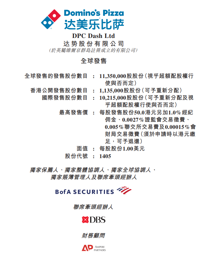 华盛资讯12月13日消息,达势股份(01405)于2022年12月13日-12月16日招股,拟全球发售1135万股,预期股份将于2022年12月23日(星期五)上午九时正(香港时间)在联交所开始买卖
