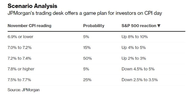 虽然上述这一情况发生的可能性相当小——小摩团队认为它发生的概率只有5%,但该分析反映了一种普遍观点,即11月CPI在决定近期美股走向方向起着关键作用。
