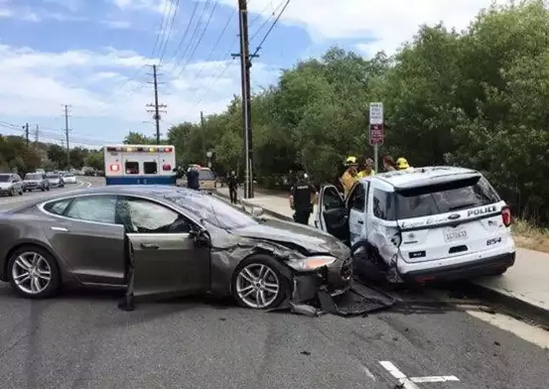 一辆特斯拉汽车在 Autopilot 模式下撞上路边的警车。