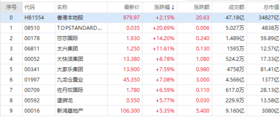 受此消息影响,12月13日港股香港本地股沸腾。谭仔国际涨超14%,莎莎国际涨14.2%,九龙仓置业涨7%,大家乐集团涨7.59%,太古地产、中银香港等跟涨。