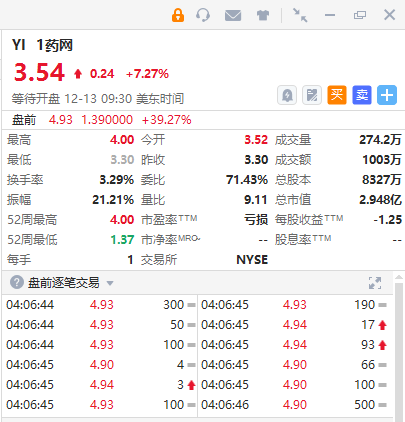 1药网美股网盘前涨近40%。1药网旗下互联网医院的新冠咨询门诊开始预售新冠口服抗病毒药物Paxlovid(奈玛特韦/利托那韦片)。