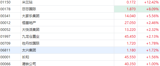 通关无疑是最重磅的利好,香港本地股今日尾盘持续走高,截至发稿,米兰站涨超12%,莎莎国际涨超8%,大家乐集团涨超5%,恒基地产、九龙仓置业等涨超2%。