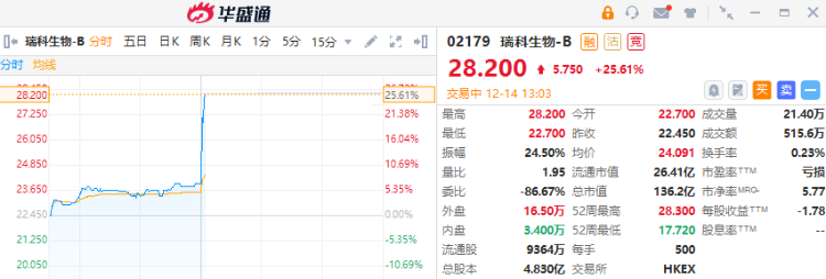 12月14日讯,港股瑞科生物-B午后直线拉升,现涨超25%,当前成交额515万港元,公司重组双组分新冠肺炎疫苗ReCOV的菲律宾II期序贯加强临床试验取得积极结果。