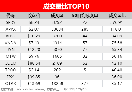 - 医药股ARS Pharmaceuticals $SPRY 周二大涨15.73%,相对期权成交量比达376.91。该股获机构SVB Leerink首次覆盖,予其“跑赢大市”(Outperform)评级,目标价14美元。