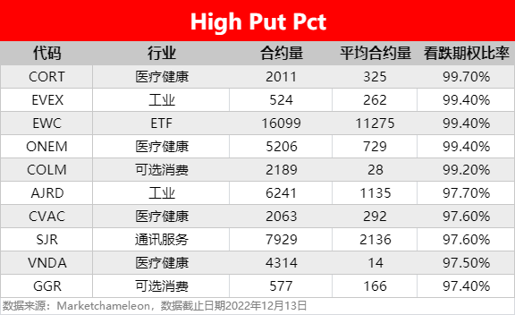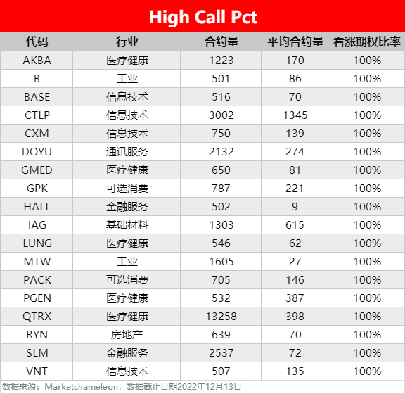 注:High Call Pct/High Put Pct是指相关期权标的当前看涨/看跌比例大小,该比值越高意味着该期权标的看涨/看跌的合约占比越高。