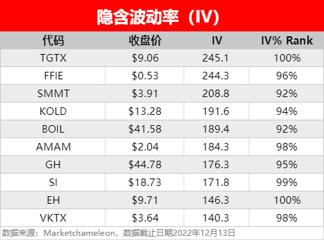 - 法拉第未来 $FFIE 周二续涨15.98%,本周累计上涨80.37%,隐含波动率达244.3,持续位居高位,前值209.6。法拉第未来此前公告在FF 91 Futurist的测试和验证方面继续取得进展。最新消息指,法拉第未来将于美东时间12月15日举办业务更新全球投资人会议,届时将宣布全球业务转型计划,其中包括FF 91 Futurist的车辆交付计划。