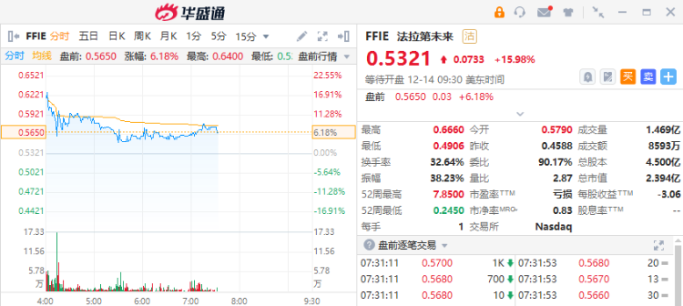 法拉第未来盘前一度涨超10%,在FF 91 Futurist的测试和验证方面继续取得进展