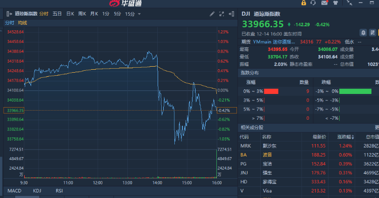 美股在鲍威尔讲话之际收复失地,在讲话结束后重拾跌势。道指收跌0.42%,纳指收跌0.76%,标普500指数收跌0.61%。热门中概股多数收涨,网易收涨4%,哔哩哔哩收涨2%。