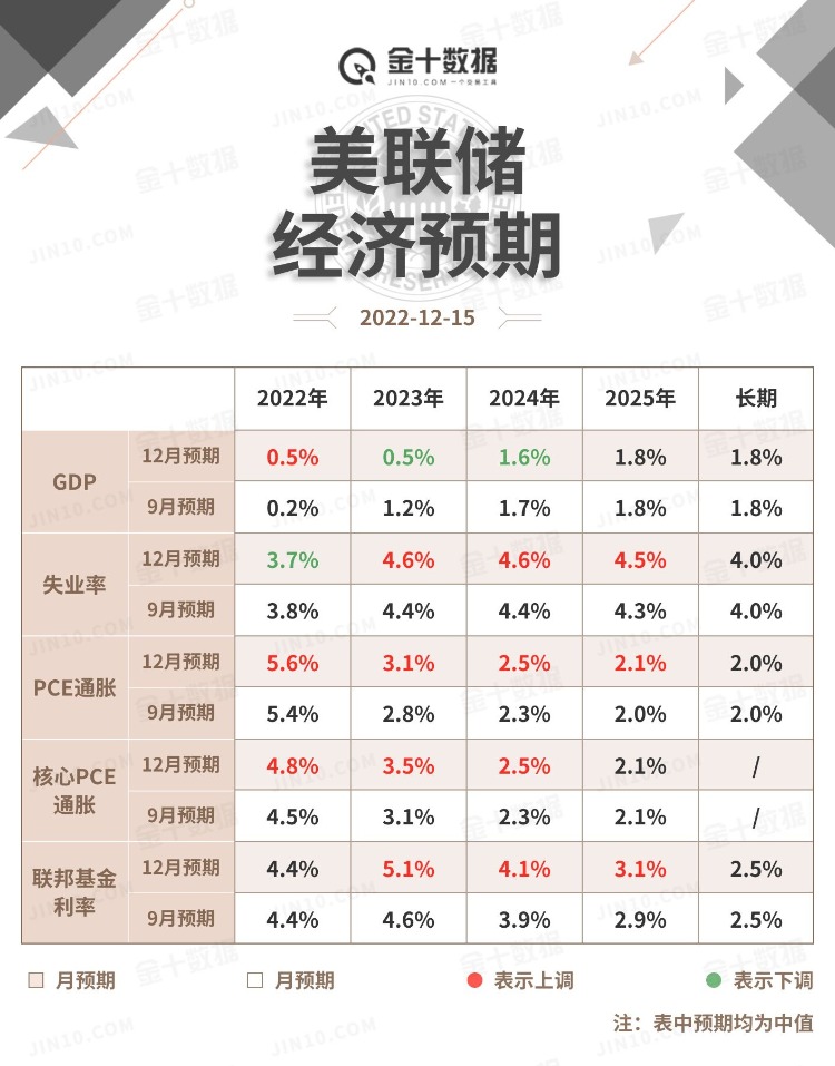 FOMC声明:全线上调未来通胀预期,上调峰值利率到5%以上